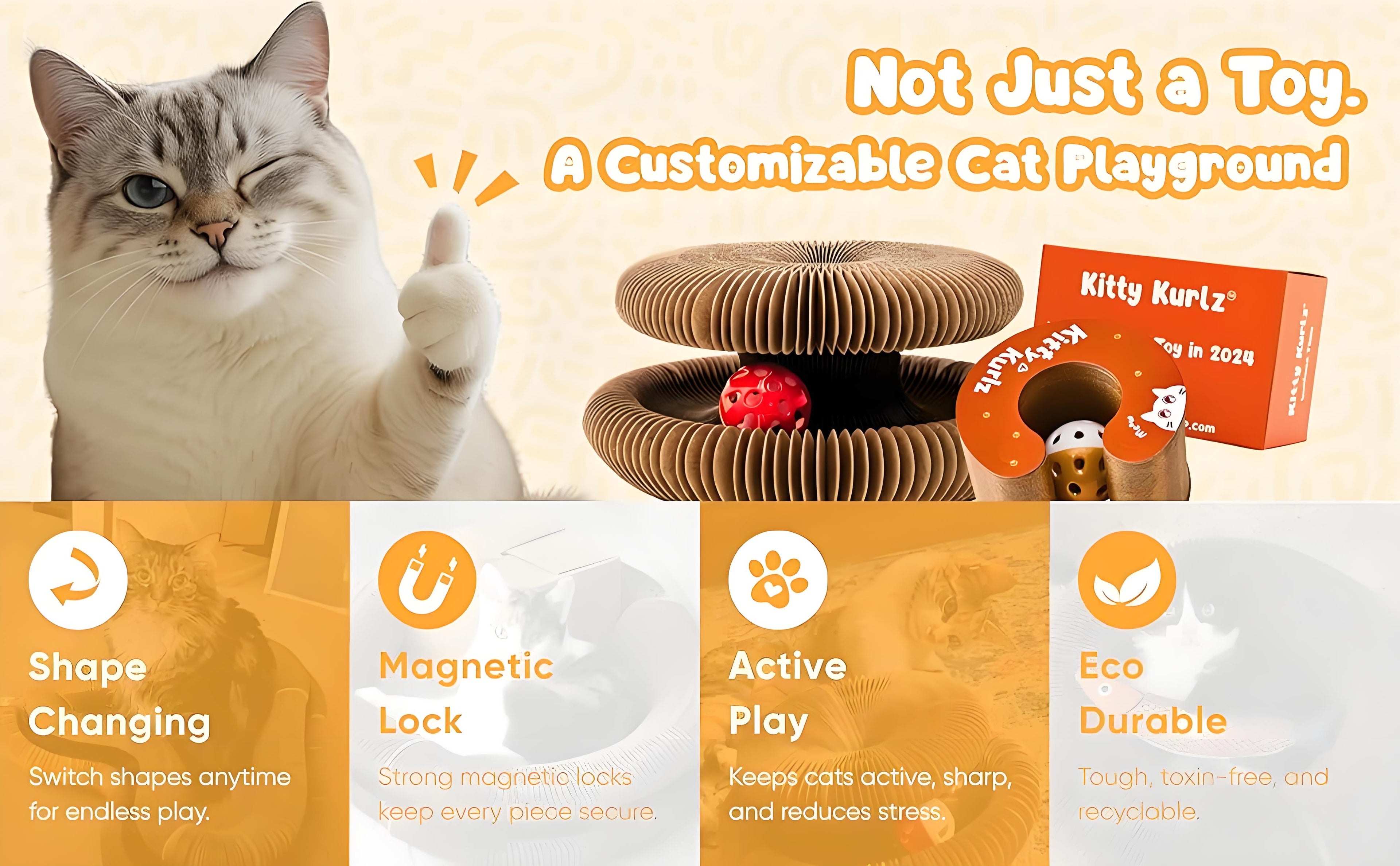 Kitty Kurlz™ is made from non-toxic, pet-safe materials. As with all toys, supervise aggressive chewers.